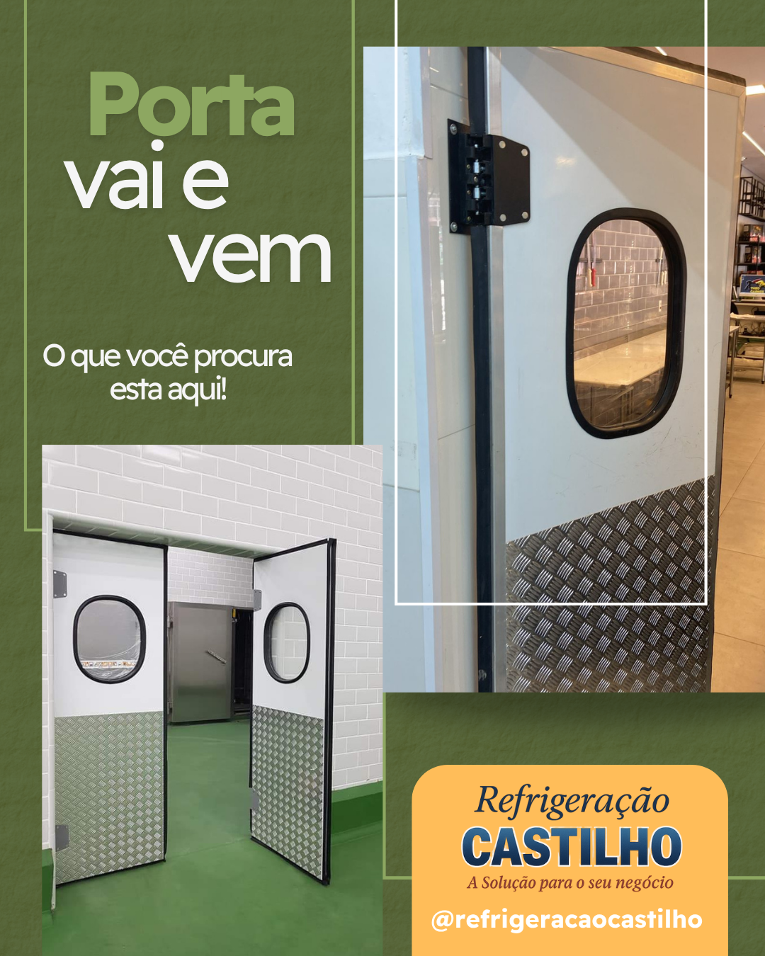 Desenvolvida portas frigoríficas vai e vem modelo rígida de tráfego pesada. Essas portas são utilizadas em diversos segmentos, como por exemplo em supermercados, cozinhas, restaurants, bares, sala de manipulação e indústrias.